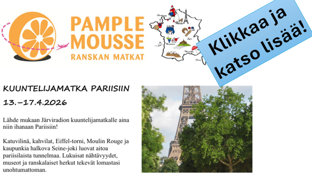 Muistathan tehdä Gramexille ääniteilmoituksen, jotta Gramex-korvaukset voidaan tilittää oikein. Ääniteilmoituksen voit tehdä Gramexin kotisivuilla osoitteessa https://www.gramex.fi/portfolio-items/ajankohtaista-ja-asiointilomakkeet/Järviradio on Suomen kuunnelluin kaupallinen radio päiväkuunteluajalla mitattuna: 3,5 tuntia/päivä! Katso lisätietoja Radiomedian sivuilta: https://radiomedia.fi/radiokanavat/jarviradio/